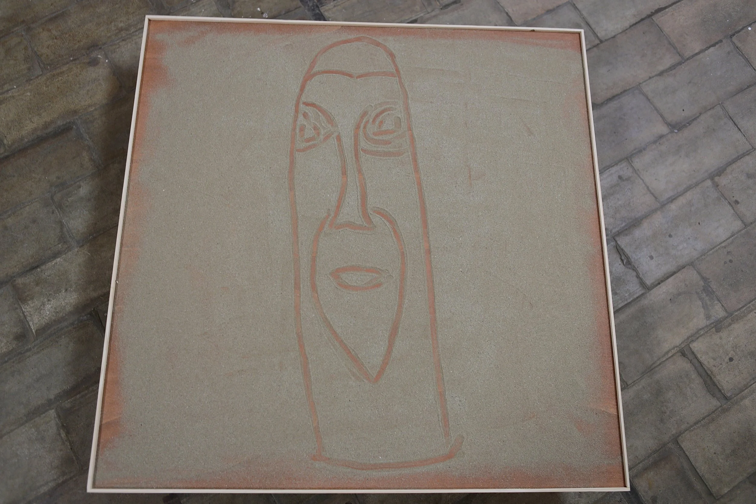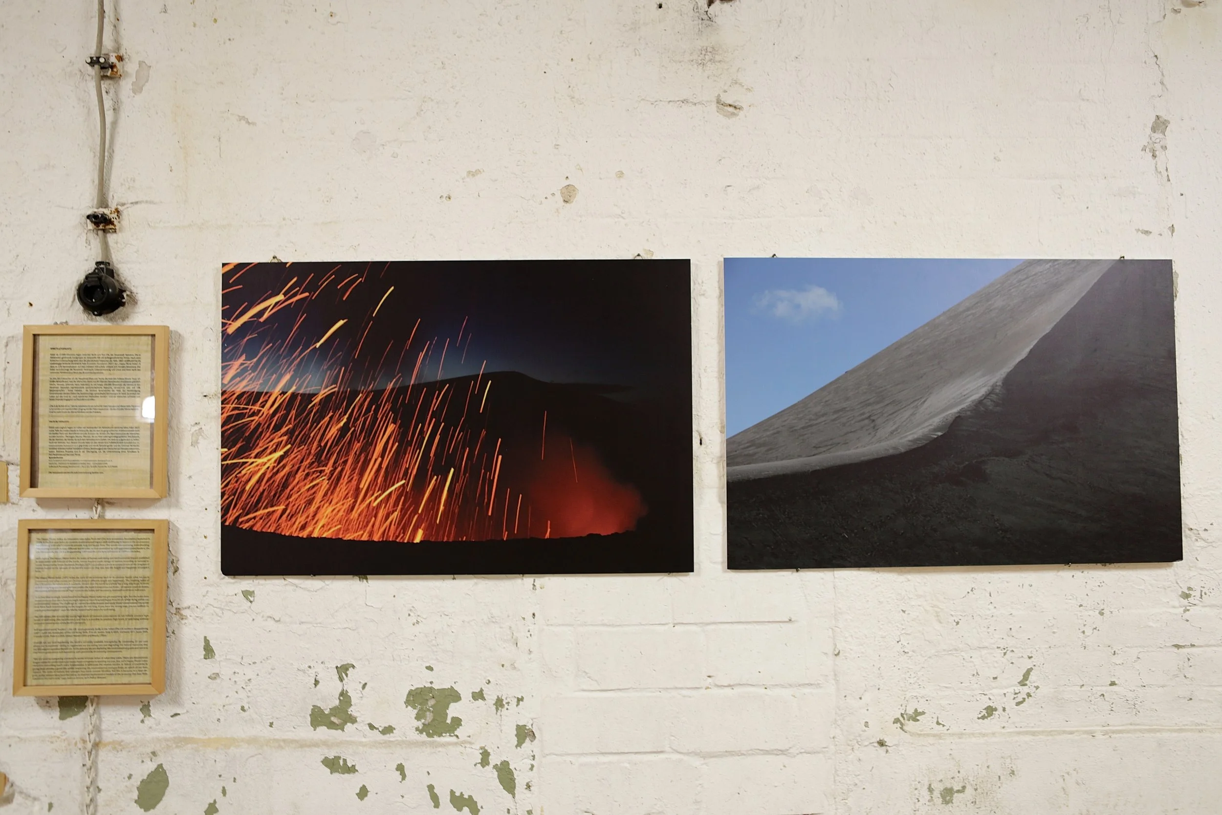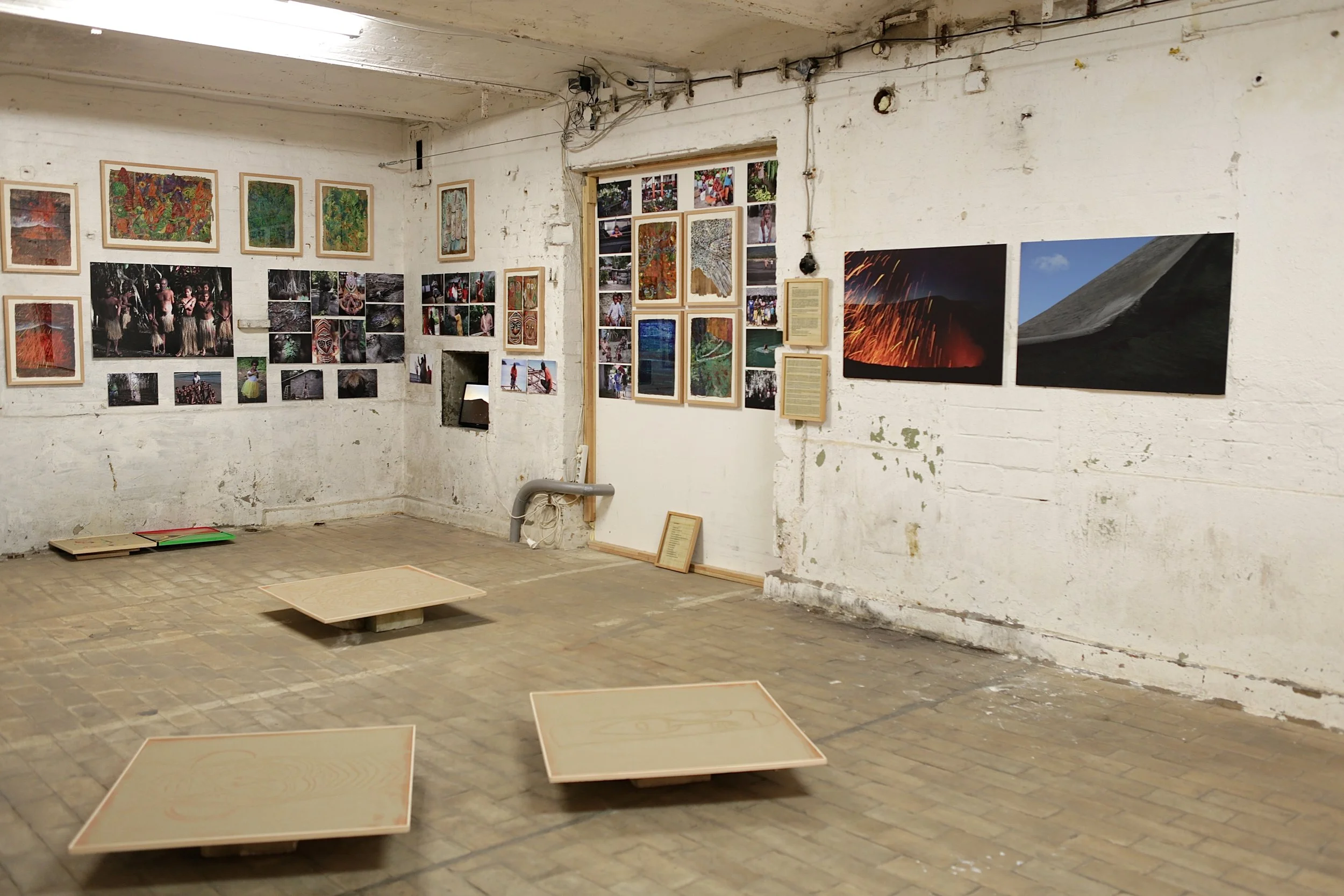 Installation: photography, video, watercolor paintings on papyrus, sand drawings, colored sand drawings – inspired by a travel to Vanuatu May/June 2013